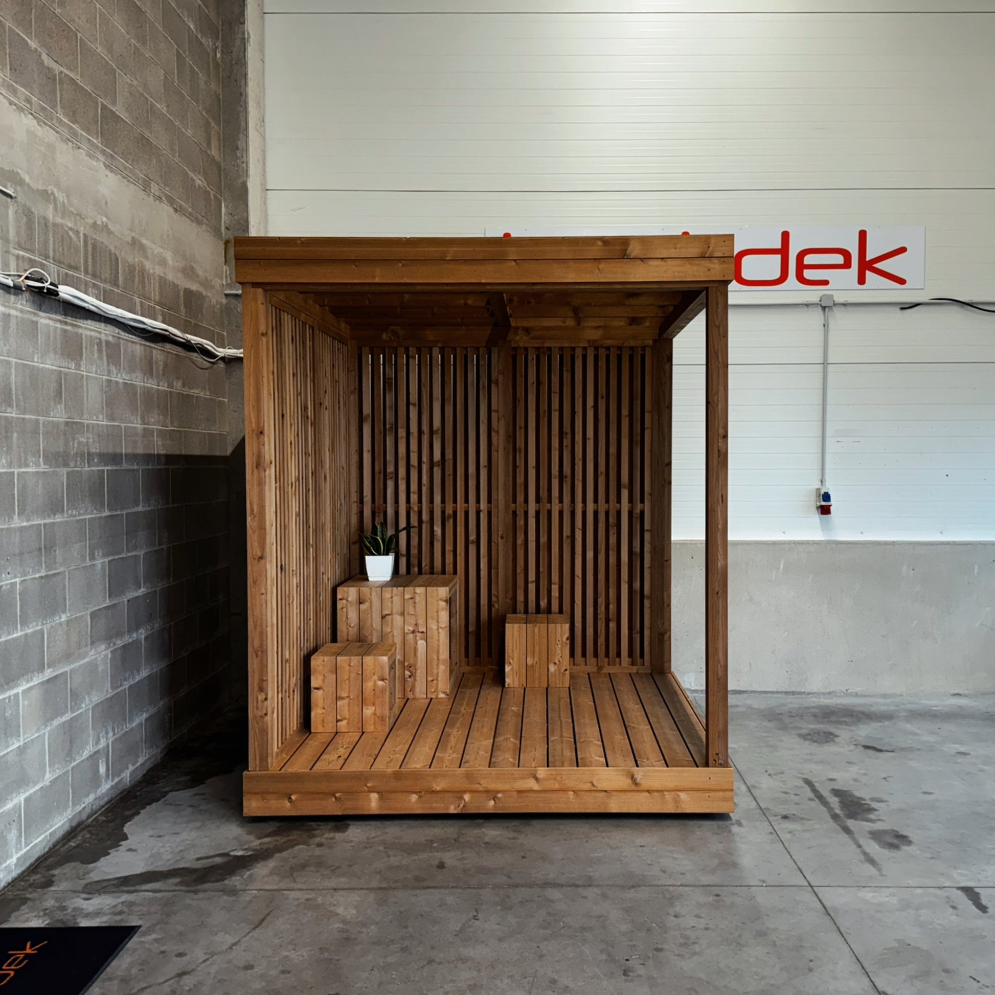 Tarnekomplektis terrassimoodulid, seinamoodulid, katusemoodulid, talad, postid, otsalauad ja kinnitusvahendid. Ostukorvi võimalik lisada reguleeritavad terrassijalad.