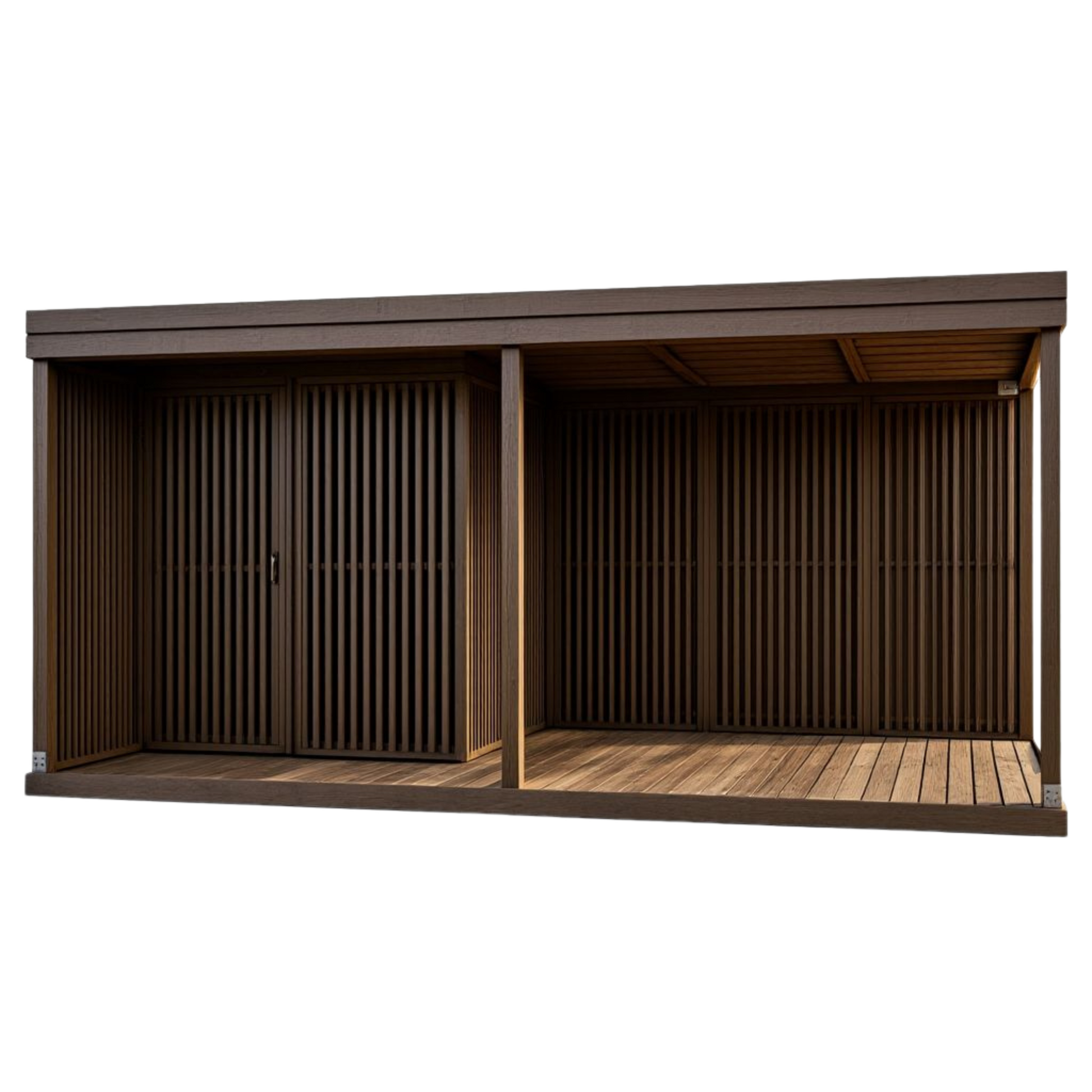 Katoksen seinät kootaan yhdestätoista pystysuorasta seinäelementistä ja yhdestä ovielementistä, joissa on kaksipuoliset 18x42 mm lämpöpuulankut. Seinäelementin leveys 1 m, korkeus 2,1 m. Seinä on ilmava ja näkösuojattu.