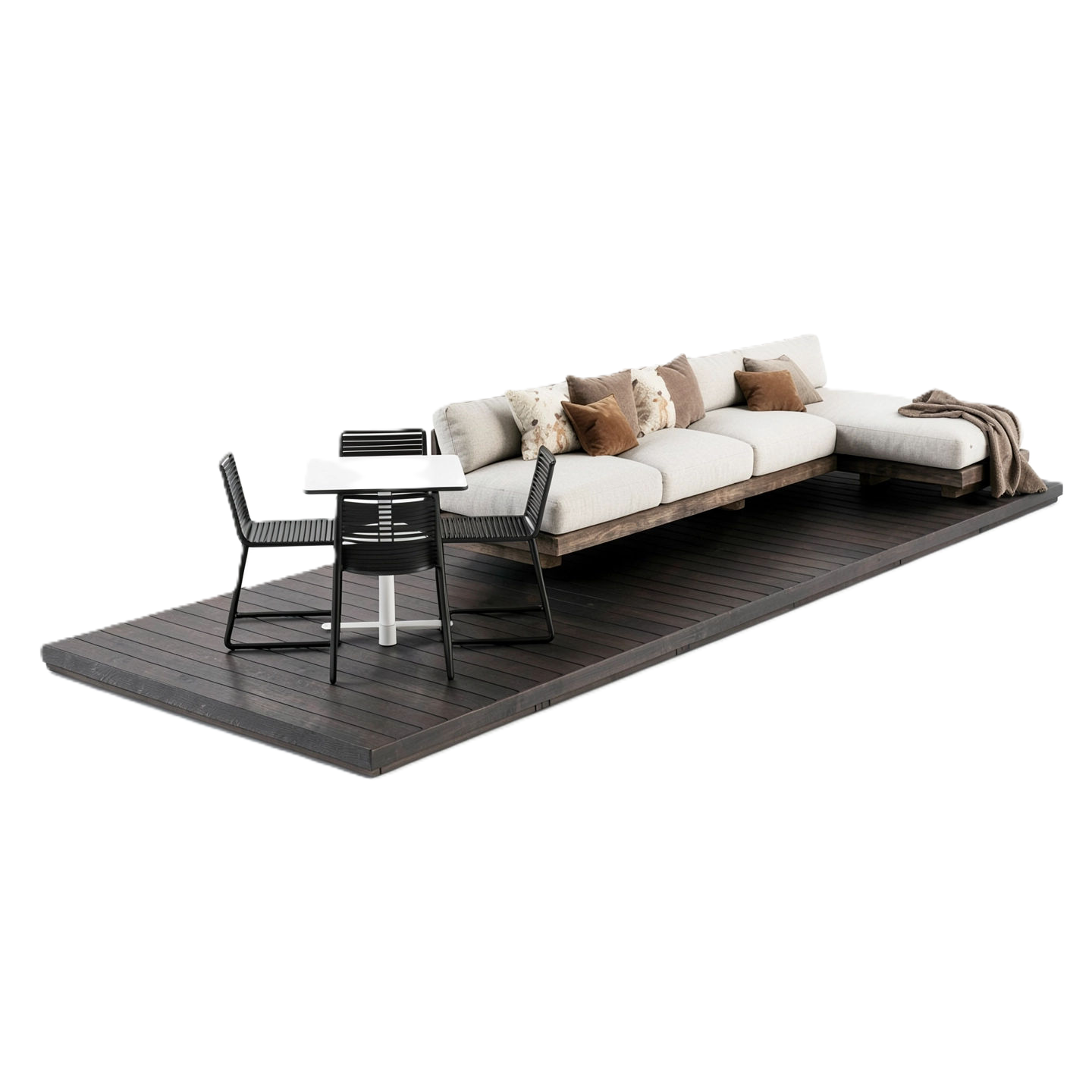 Terassi kootaan kuudesta 1x2 m terassielementista, joiden 45x95 mm kestopuinen pohjarunko toimii kantavana rakenteena.